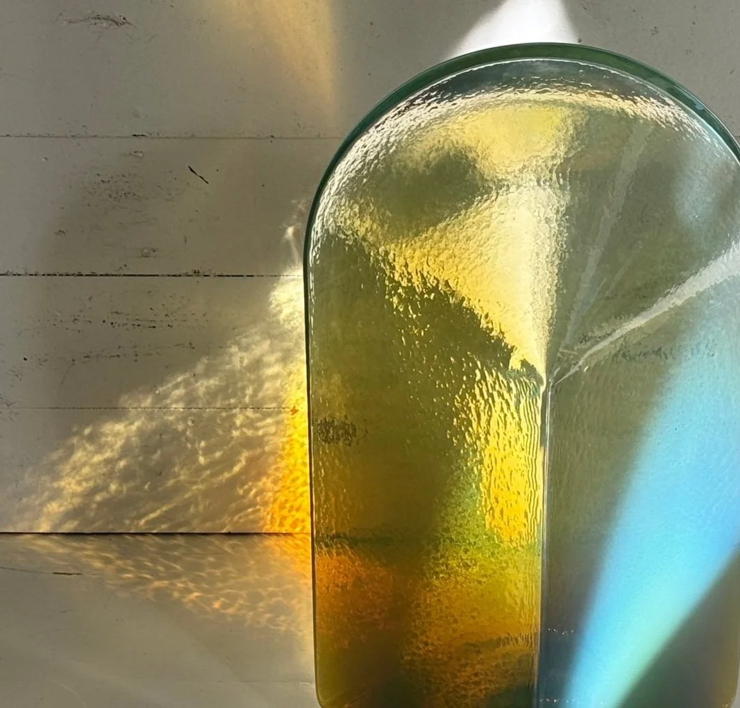 Iris Grün (Iris Green) is a transparant colour with an iridescent quality. When exposed to light it changes from shades of green to shades of orange.