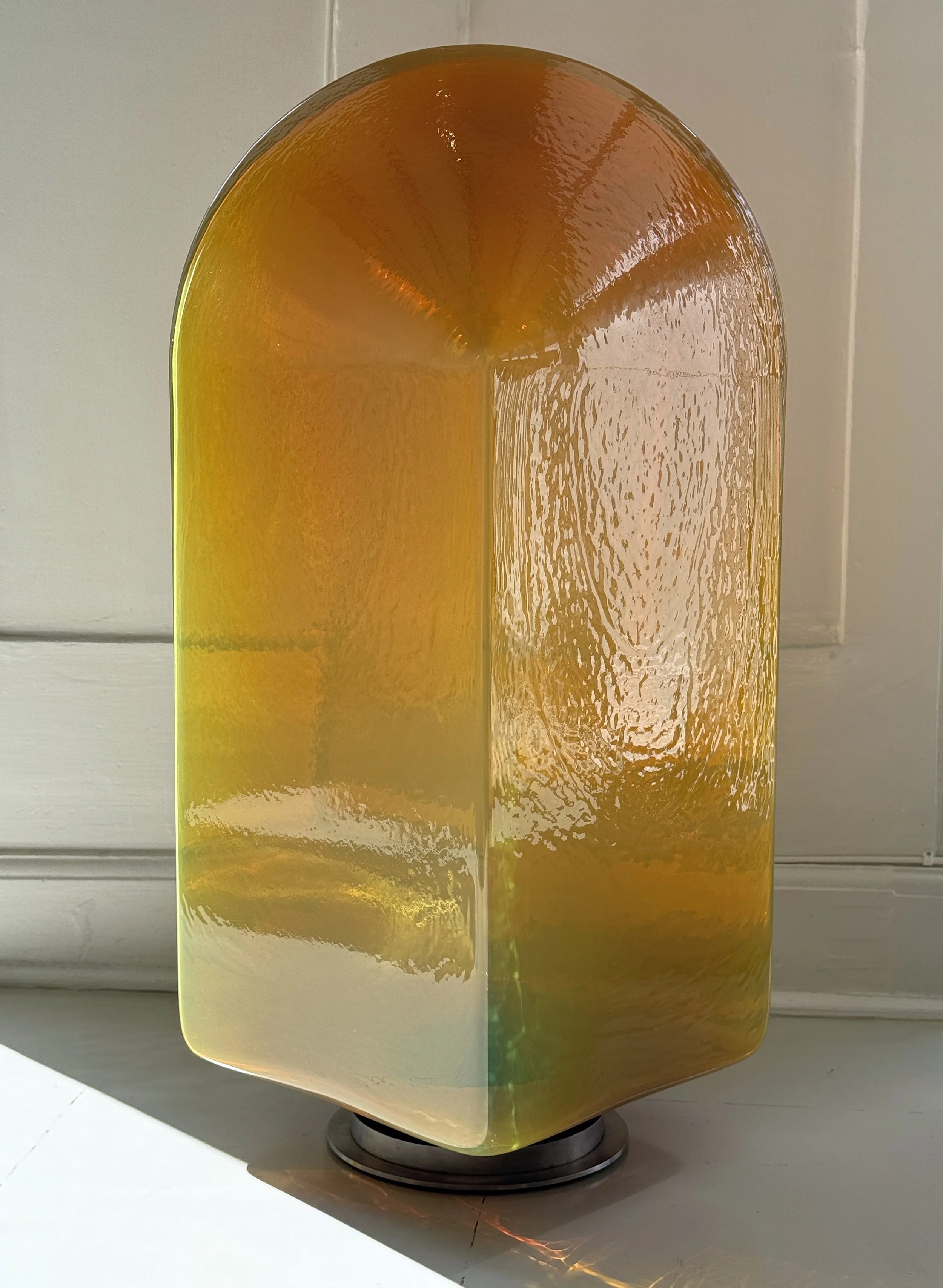 Silberorange (Silver Orange) is a transparent colour with an iridescent quality. When exposed to light it changes from shades of orange to shades of green.
